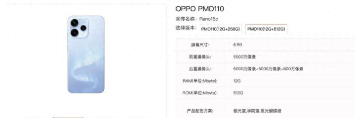 据悉,一款型号OPPO PMD110,宣传名称为Reno15c的OPPO旗下新机于近日现身了电信终端产品库。